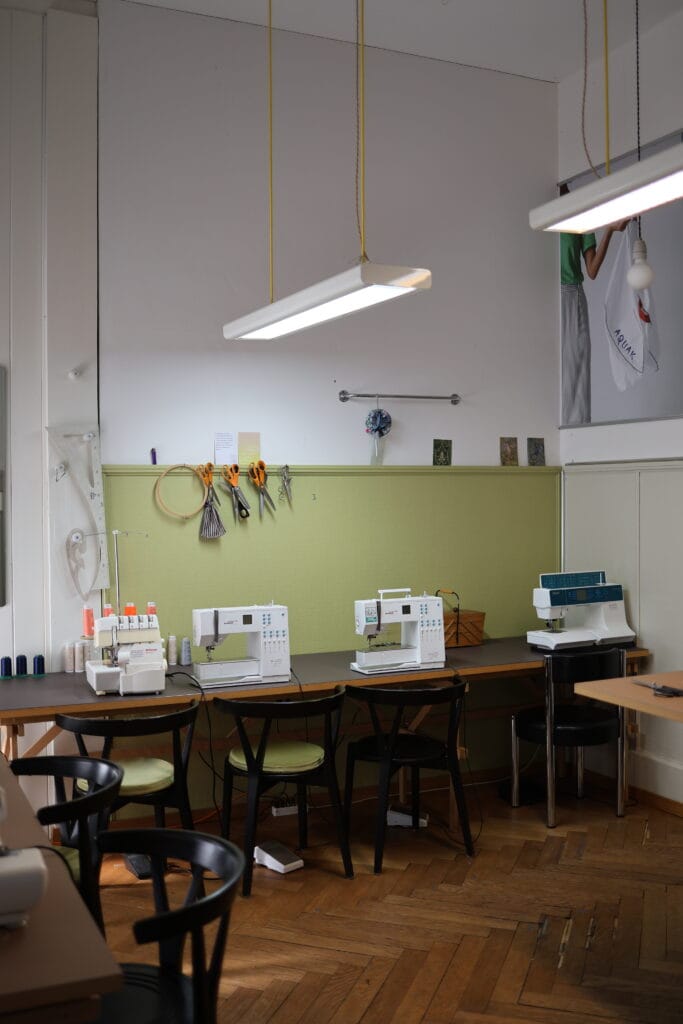 Miete dir dein eigenes Atelier im Nähkästli – voll ausgestattet mit allem, was du zum Nähen, Zuschneiden und Gestalten brauchst.